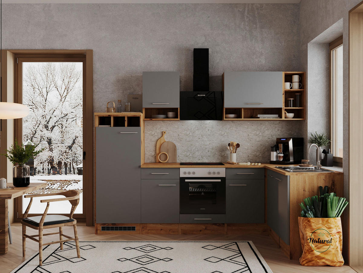 Respekta ECKKÜCHE 280/172 cm in Grau, Wildeiche
