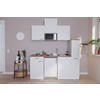 - Inkludierte Elektrogeräte: Kühlschrank mit Gefrierfach, Mikrowelle, Kochfeld