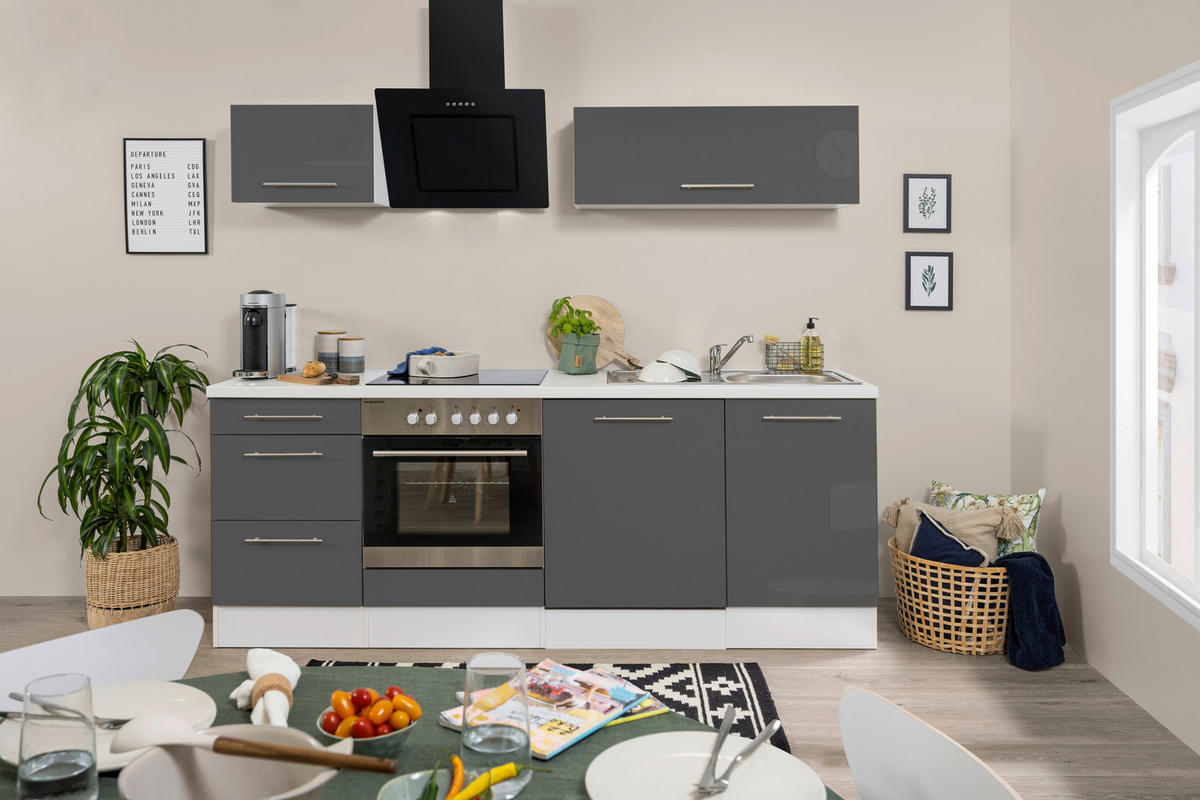 Respekta KÜCHENBLOCK 220 cm in Grau, Schwarz, Weiß