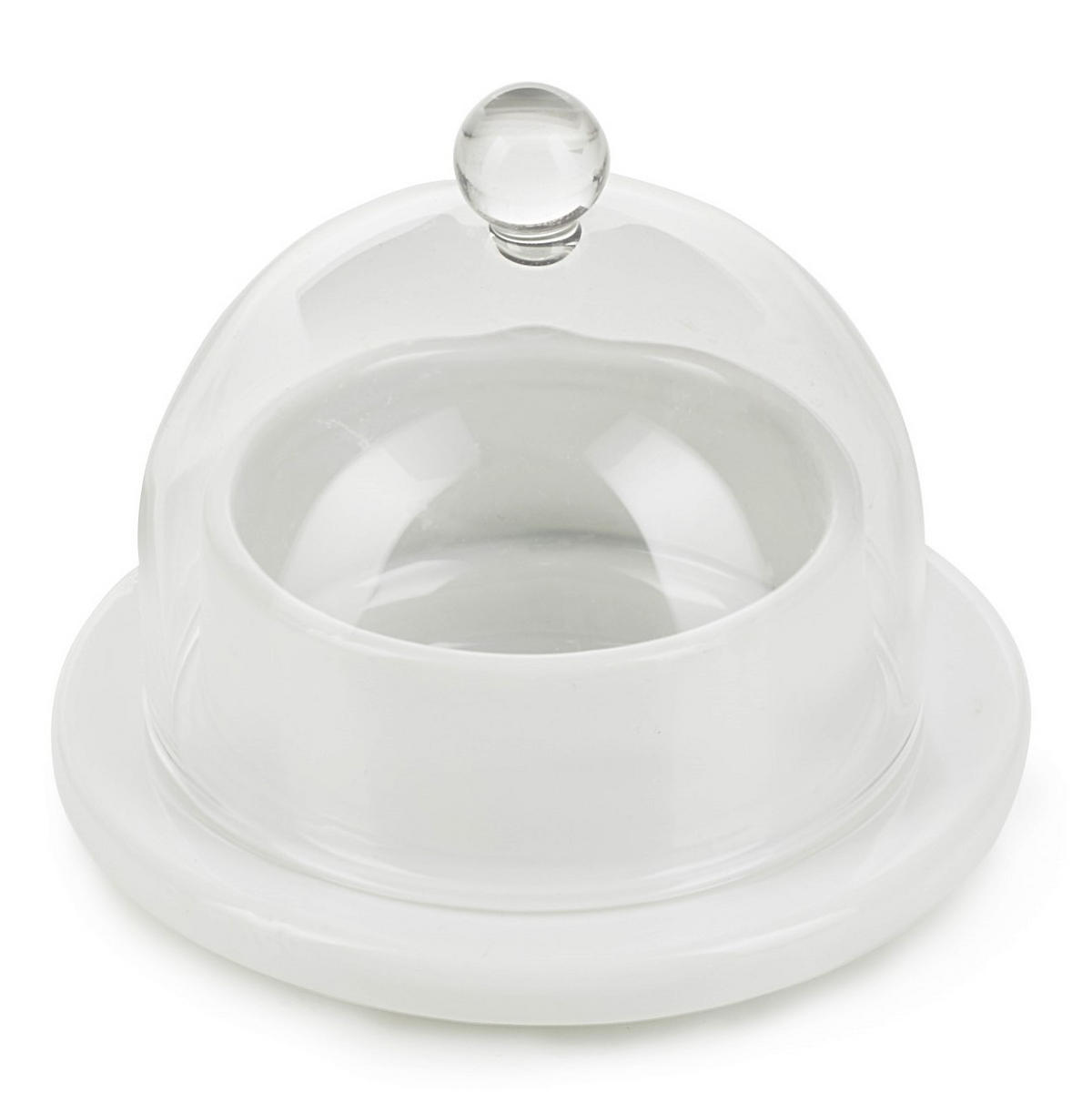 Revol Porcelaine France BUTTERTELLER MIT GLASDECKEL 9 cm Weiss