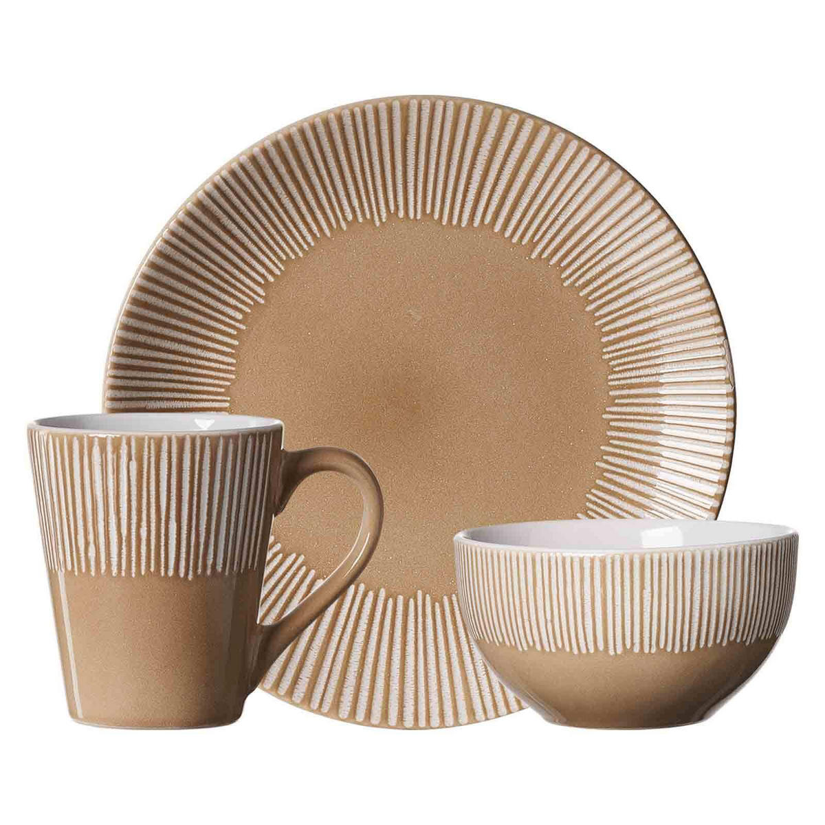 Mit dem 18-teiligen Banda Frühstücks-Set genießen Sie Ihr Frühstück in modernem Design und höchster Qualität. Das Set besteht aus 6 Desserttellern (ø 21 cm), 6 Müslischalen (ø 14 cm) und 6 Henkelbechern (315 ml) – ideal für ein harmonisches Frühstück mit Familie oder Freunden. Dank der minimalistischen Coupe-Form und dem dezenten Streifen-Relief fügt sich das Set perfekt in jede Tischdekoration ein. Die Kombination aus schlichter Eleganz und funktionalem Design macht Banda zu einem vielseitigen Begleiter für den Alltag. Ob knuspriges Müsli, frische Brötchen oder aromatischer Kaffee – dieses Set sorgt für ein entspanntes und stilvolles Frühstückserlebnis. Hergestellt aus hochwertigem Steingut, überzeugt das Geschirr durch seine robuste Qualität und angenehme Haptik. Zudem ist es spülmaschinenfest, sodass die Reinigung mühelos gelingt – perfekt für den modernen Haushalt. Setzen Sie auf zeitlose Ästhetik und Funktionalität mit dem Ritzenhoff & Breker Banda Frühstücks-Set und starten Sie genussvoll in den Tag!