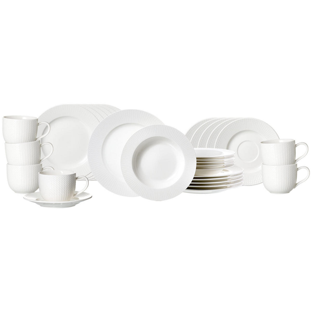 Stilvoll dinieren: Das Kombiset saphir glänzt mit einem filigranen, mosaikartigen Relief, das subtil mit dem Licht spielt und ganz nebenbei als spannendes haptisches Detail erlebt wird. Mit seinem feinen, zurückhaltenden Design überlässt das smarte Weißgeschirr kulinarischen Kreationen galant den großen Auftritt. Dank seiner schlichten Eleganz und zeitgemäßen Ästhetik eignet sich saphir nicht nur perfekt für besondere Anlässe und Fine Dining, sondern verleiht selbstverständlich auch den täglichen Mahlzeiten das gewisse Etwas.