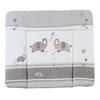 Die roba Wickelauflage im klassischen Sternenzauber-Design in grau in sorgt mit ihrem 3-seitig erhöhten Rand für mehr Sicherheit und Geborgenheit beim Wickeln und Pflegen. Beim liebevoll gestalteten Design Sternenzauber erzählen sich Häschen, Bär und Elefanten eine Gute-Nacht-Geschichte, während sie den Sternenhimmel betrachten. Der Oberflächenstoff der PU-beschichteten Wickeltischauflage ist besonders hautfreundlich und anschmiegsam. Die Wickelunterlage aus Baumwollpolyestergemisch und phtalatfreier PU-Beschichtung ist weich gepolstert, damit Ihr Baby bequem liegt. Alle verwendeten Materialien der PU-beschichteten Wickeltischauflage sind schadstoffgeprüft, zertifiziert und werden regelmäßig geprüft. Die Wickelauflage ist 100% PVC- und phthalatfrei und ist in vielen weiteren roba Designs erhältlich. Die Oberfläche der Wickelunterlage ist abwischbar und pflegeleicht. Die Maße 85 x 75 cm, Höhe ca. 4 cm, sind an die meisten Standardwickelkommoden angepasst.