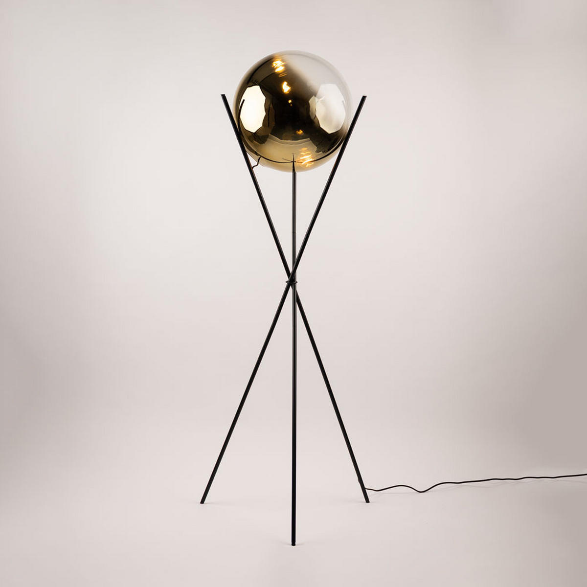 Die moderne Glaskugel der Stehleuchte liegt auf einem eleganten Dreibein auf und sorgt mit der locker in der Kugel liegenden Fassung für spannende Lichteffekte. Die Sphere Stehleuchte zieht mit ihrem minimalistisch eleganten Design nicht nur alle Blicke auf sich, sie punktet auch mit individuellen Konfigurationsmöglichkeiten und dem integrierten Fußdimmer zur Anpassung der Helligkeit. Ihre individuelle Orb Stehleuchte Wählen Sie die elegante Stehlampe in verschiedenen Ausführungen. Ob klassisch mit einem Schwarzen Gestänge und einer rauchfarbenen Glaskugel, schwebend leicht mit einer klaren Glaskugel, die Sphere Stehlampe zieht garantiert alle Blicke auf sich. Neu gibt es auch eine goldenes Gestänge, welches elegant ein wenig Farbe ins Spiel bringt. Individuelle Lichtstimmung Passen Sie die Helligkeit ganz einfach mit dem integrierten Fußdimmer an Ihre Bedürfnisse an. Für die E27-Fassung der Leuchte empfehlen wir die trendigen E27-Vintage Leuchtmittel, die in Verbindung mit der Sphere Stehleuchte einen gemütlichen Charme versprühen. Durch die ca. 13cm große Öffnung der Leuchte können Sie auch große dimmbare Leuchtmittel mit bis zu Ø 12,5cm verwenden. Bitte verwenden Sie die Leuchtmittel aus unseren Empfehlungen, um ein optimales Ergebnis zu bekommen. Anmut in Serie Entdecken sie weitere Leuchten aus der Sphere Serie wie die dekorative Pendelleuchte oder die außergewöhnliche Sphere Galerieleuchte. Oder wählen Sie alternativ zur einfarbigen Glaskugel die Fairy Stehleuchte mit dem teilverspiegelten Glas oder die Progress Stehleuchte mit ihrem sanften Farbverlauf.
