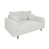Gefertigt aus hochwertigem Boucle-Stoff, strahlt dieses Sofa Gemütlichkeit und subtile Eleganz aus. Seine braunen Holzfüße verleihen Charakter und betonen das minimalistische, skandinavische Design.
