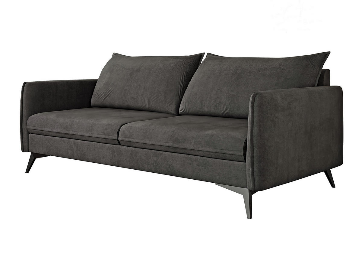 Dieses Dreisitzer-Sofa aus luxuriösem Mikrofaserstoff vereint herausragende Qualität mit ansprechendem Design. Aus hochwertigen Komponenten gefertigt, bietet es ein unvergleichliches Sitzerlebnis. Der weiche Sitz lädt förmlich zum Entspannen ein, während die ergonomisch geformten Rückenkissen den Rücken hervorragend stützen. Mit seinen schwarzen Metallfüßen strahlt das Sofa Eleganz und Luxus aus, die jeden Raum aufwerten. Die sorgfältige Verarbeitung garantiert Langlebigkeit und Zuverlässigkeit. Die Ziernähte entlang der Armlehnen verleihen dem Sofa Raffinesse und unterstreichen sein elegantes Aussehen.