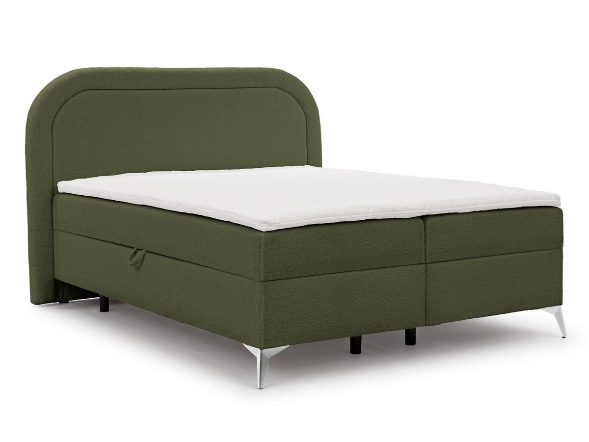 Die eleganten Metallfüße sind 15 cm hoch und ermöglichen die problemlose Reinigung mit einem Saugroboter. Sie sind in drei attraktiven Varianten erhältlich: glänzendes Gold, mattes Schwarz oder zeitloser Chrom. Für höchsten Schlafkomfort sorgt ein integrierter Topper aus hochelastischem Schaumstoff. Der Bezug des Toppers ist abnehmbar und waschbar – ideal für eine einfache Pflege und dauerhaftes Frischegefühl.