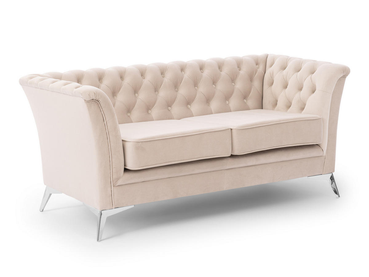 S-Style Möbel CHESTERFIELD-SOFA 2-sitzer Whitby Beige Samt mit silbernen Füßen