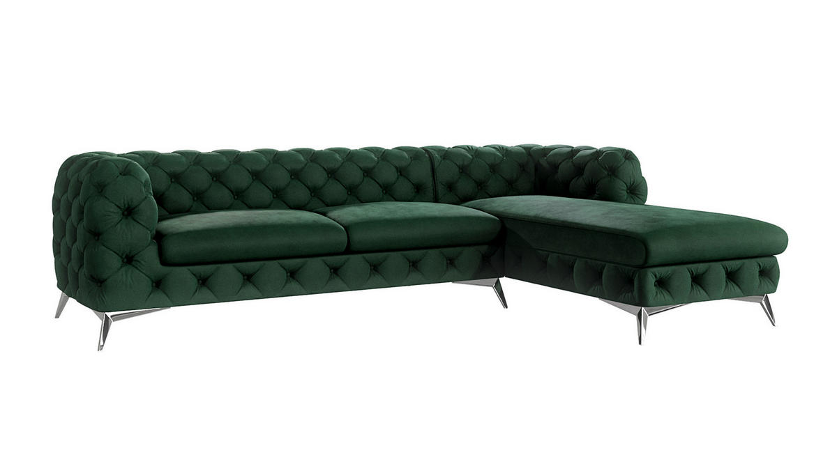 S-Style Möbel ECKSOFA Chesterfield Laura Flasche Grün Samt