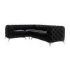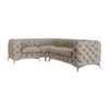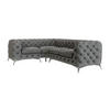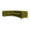 Das Chesterfield-Ecksofa mit Ottomane und Silber Metallfüßen ist ein luxuriöses Möbelstück für Ihr Wohnzimmer. Hergestellt aus hochwertigem Samtstoff bietet er nicht nur einen eleganten Look, sondern auch hohen Komfort. Die Sitzkissen sind mit hochwertiger Schaumstoffpolsterung und Federn gefüllt, um ein angenehmes und unterstützendes Sitzerlebnis zu gewährleisten. Das klassische Chesterfield-Design mit Knopfverzierung an der Vorderseite und Rückseite verleiht diesem Ecksofa eine zeitlose Eleganz. Die Silber Metallfüße in glänzendem Silber bieten nicht nur Stabilität, sondern verleihen dem Möbelstück auch einen Hauch von Glamour. Die Ottomane bietet zusätzlichen Komfort und macht dieses Ecksofa zu einem idealen Ort für gesellige Zusammenkünfte oder entspannte Abende. Das Chesterfield-Ecksofa bietet Platz für bis zu fünf Personen und ist eine beeindruckende Ergänzung für Ihr Wohnzimmer.