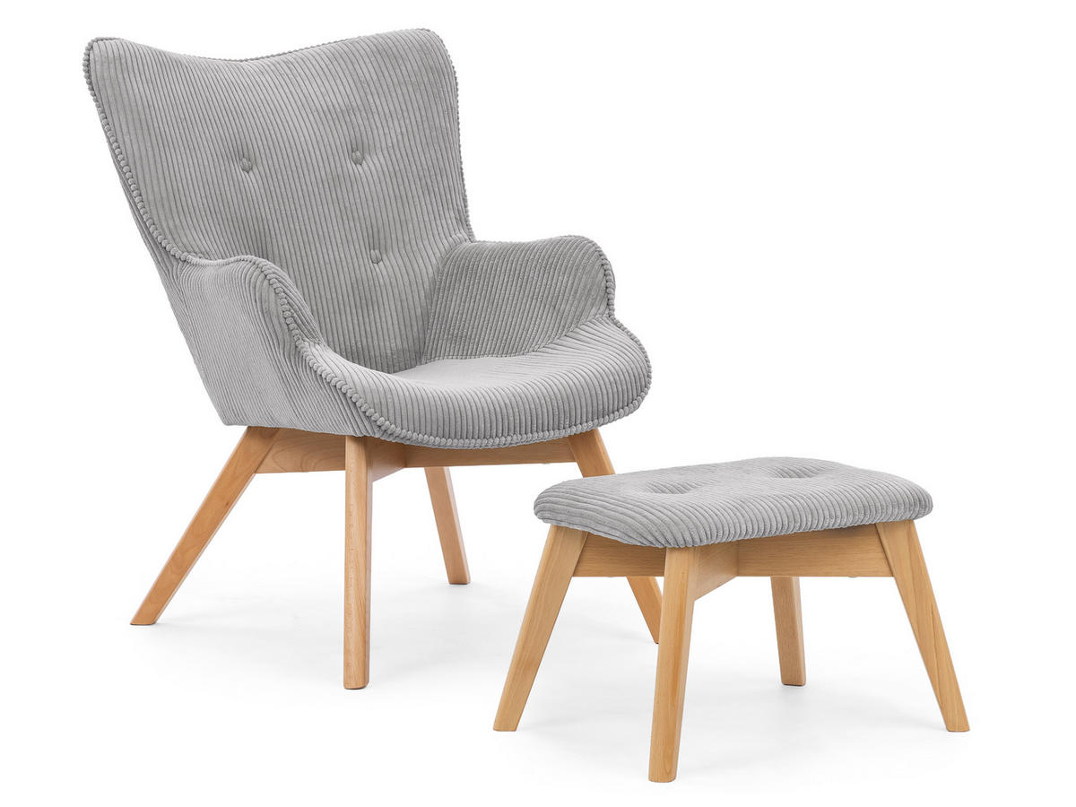 Entdecken Sie die perfekte Kombination aus Stil und Komfort mit dem Lounge-Sessel Lenari und dem passenden Fußhocker. Im modernen skandinavischen Design gestaltet, verleiht dieses Set jedem Wohnraum eine ruhige und elegante Ausstrahlung. Der weiche, gerippte Cordstoff bietet eine warme und einladende Haptik, die sowohl optisch als auch funktional überzeugt. Sanft geschwungene Linien und eine stützende Rückenlehne sorgen für hervorragenden Sitzkomfort – ideal für lange, entspannte Abende.