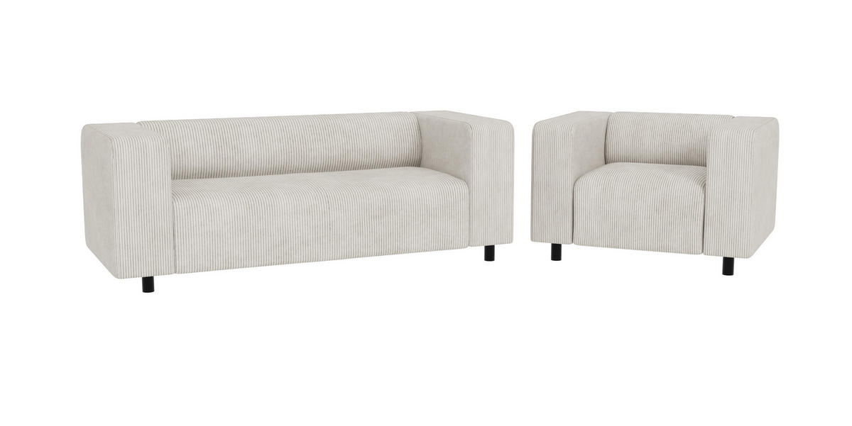 S-Style Möbel SITZGARNITUR 2+1 Tove Beige Cord