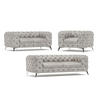 Die Chesterfield-Polstergarnitur bestehend aus einem 3-Sitzer, einem 2-Sitzer und einem Sessel mit Silber Metallfüßen ist die perfekte Wahl für ein elegantes Wohnzimmer. Hergestellt aus hochwertigem Samtstoff bieten diese Möbelstücke nicht nur einen Hauch von Luxus, sondern auch hohen Komfort. Die Sitzkissen sind mit hochwertiger Schaumstoffpolsterung und Federn gefüllt, um ein angenehmes und unterstützendes Sitzerlebnis zu gewährleisten.
