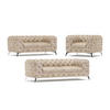 Das klassische Chesterfield-Design mit Knopfverzierung an der Vorderseite und Rückseite verleiht diesen Möbeln eine zeitlose Eleganz. Die Metallfüße in glänzendem Silber sorgen nicht nur für Stabilität, sondern verleihen dem Set auch einen Hauch von Glamour. Dieser Chesterfield-Sofa-Satz bietet Platz für bis zu sechs Personen und ist ideal für Familien oder Unterhaltung in größerer Runde. Ein Ensemble, das Komfort und Stil vereint.