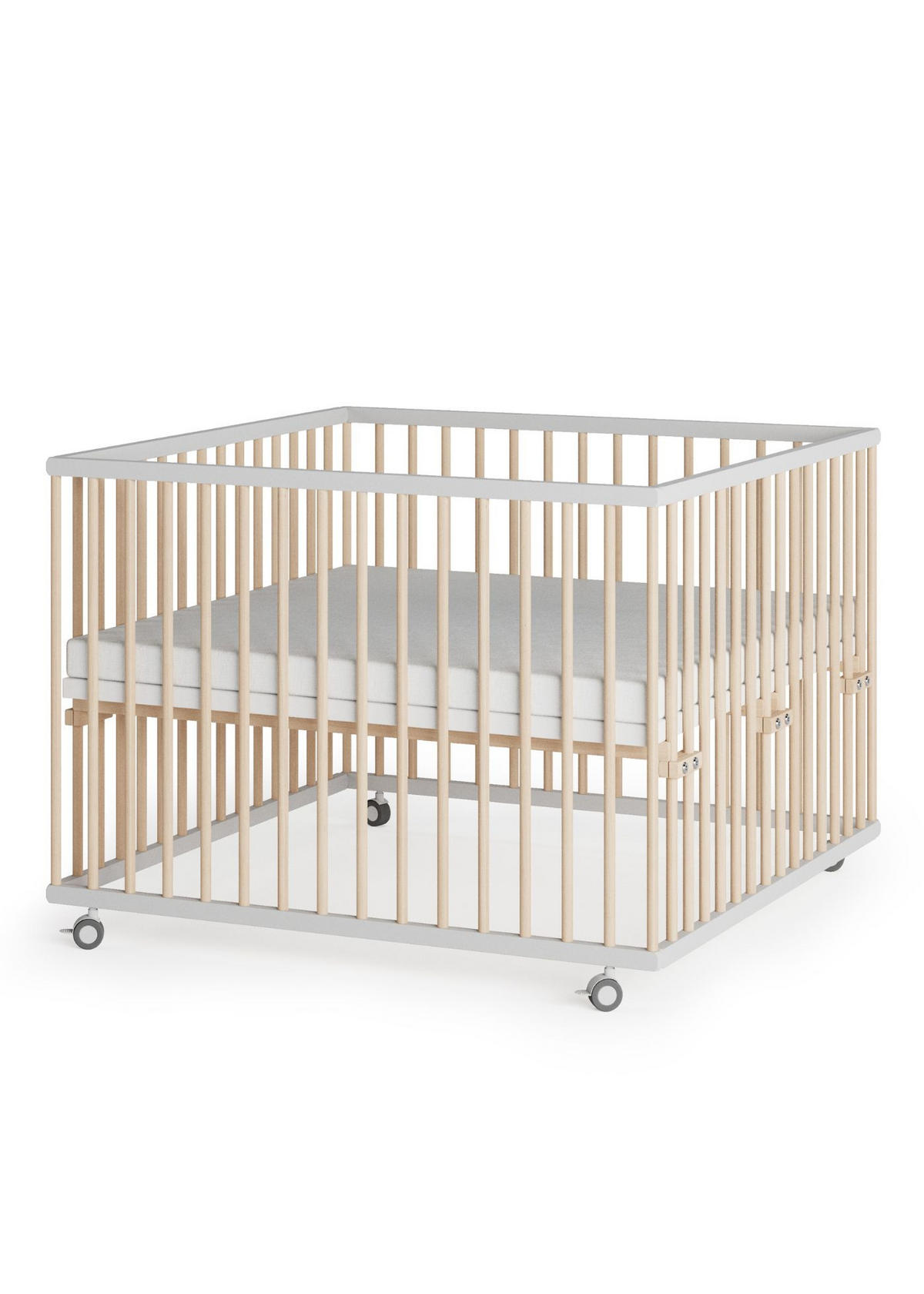LAUFGITTER 100x100 cm mit Matratze Cloud Air & Lattenrost - weiß/natur - Premium Kollektion - Weiß/Naturfarben, Holz (100/74/100cm) - Sämann – make a difference.Sämann – make a difference.