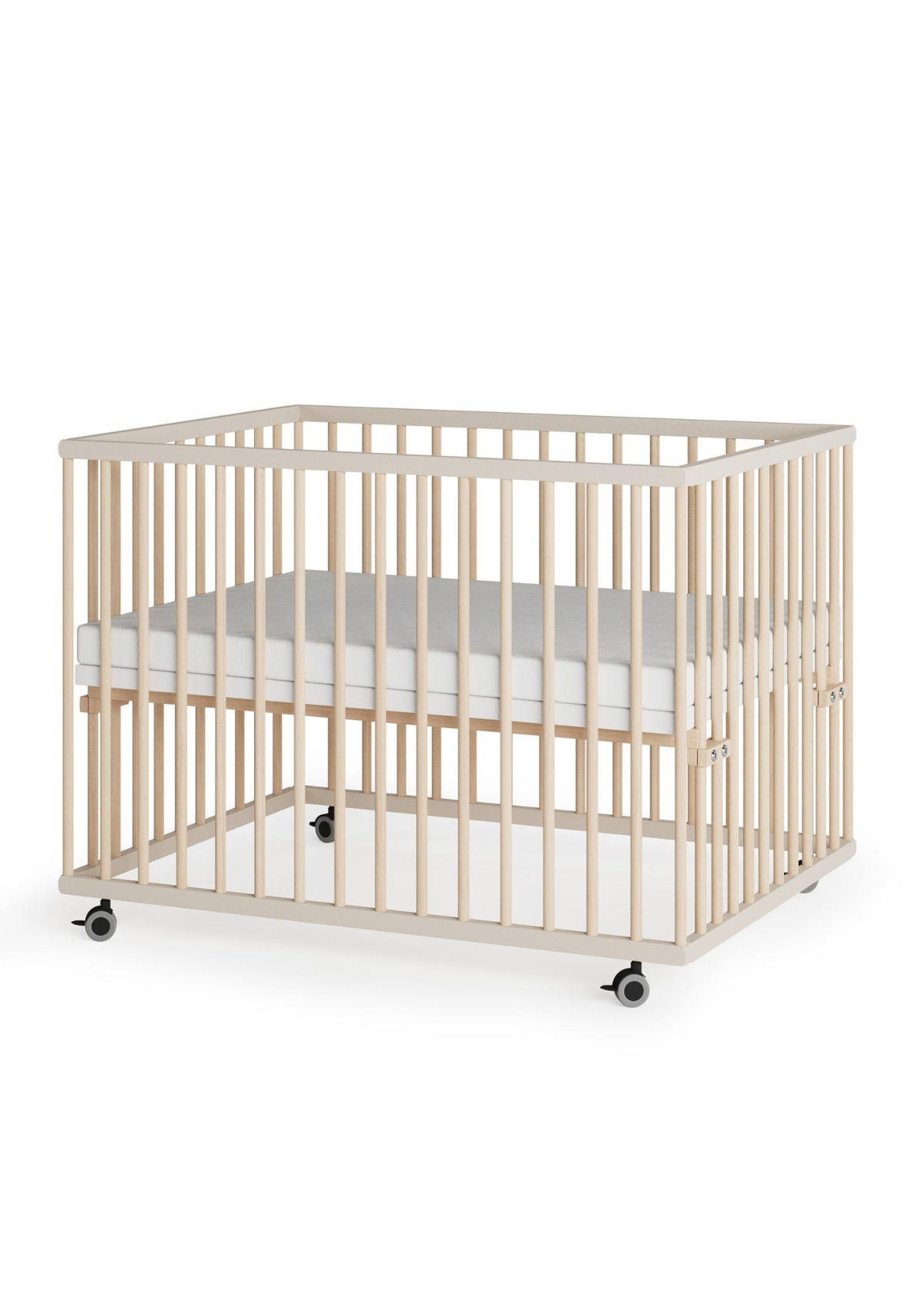 LAUFGITTER 75x100 cm mit Matratze, Lattenrost & Schlupfsprossen - sahara dust/natur - Premium Kollektion - Sandfarben/Naturfarben, Holz (100/74/75cm) - Sämann – make a difference.Sämann – make a difference.