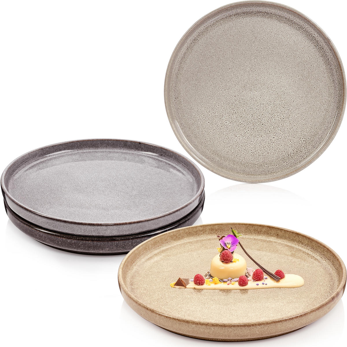 Das Kairo Dessertteller Set ist die ideale Ergänzung zu den passenden Speisetellern und bietet vollendeten Genuss für Ihre Desserts. Diese vier Teller in den verschiedenen Braun- Grau- und Erd-Tönen bringen eine fröhliche Atmosphäre auf Ihren Tisch. Ob für den täglichen Genuss oder besondere Anlässe, dieses Set vereint modernes Design mit funktionaler Eleganz für ein unvergessliches Dessert-Erlebnis.
