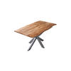 Trendiger Esszimmertisch Benni, silbernes Spider-Metallgestell, 140 x 80 cm, Akazienholz naturfarben und massiv