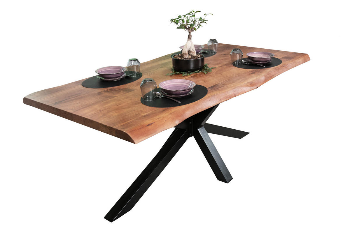 Hochwertiges Unikat – Der Esstisch besteht aus massiven und robusten Akazienholz. Aufgrund der einzigartigen Maserung erhalten Sie ein Unikat mit individuellem Charakter. Das Spider-förmige Gestell sorgt für einen gelungenen Kontrast, welcher dem Massivholztisch einen Hauch von industriellem Look verleiht.