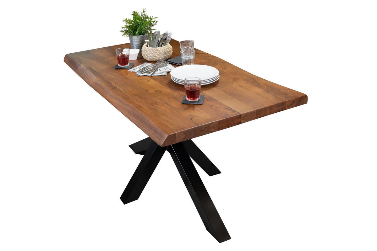 Hochwertiges Unikat – Der Esstisch besteht aus massiven und robusten Akazienholz. Aufgrund der einzigartigen Maserung erhalten Sie ein Unikat mit individuellem Charakter. Das Spider-förmige Gestell sorgt für einen gelungenen Kontrast, welcher dem Massivholztisch einen Hauch von industriellem Look verleiht.