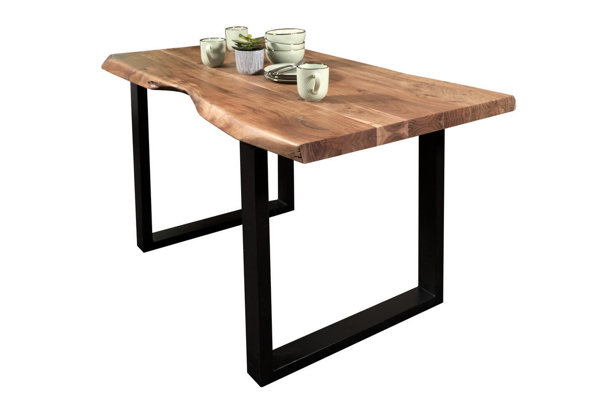 Hochwertiges Unikat – Der Esstisch besteht aus massiven und robusten Akazienholz. Aufgrund der einzigartigen Maserung erhalten Sie ein Unikat mit individuellem Charakter. Das U-förmige Gestell sorgt für einen gelungenen Kontrast, welcher dem Massivholztisch einen Hauch von industriellem Look verleiht.