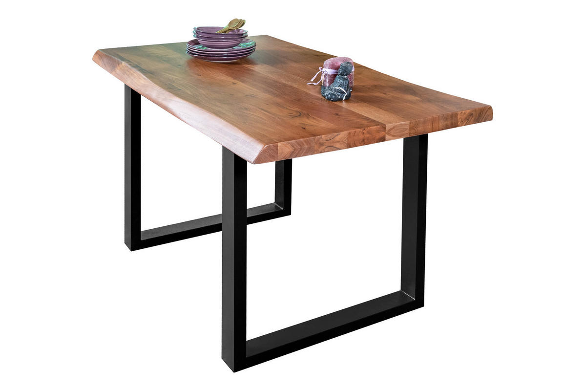 Hochwertiges Unikat – Der Esstisch besteht aus massiven und robusten Akazienholz. Aufgrund der einzigartigen Maserung erhalten Sie ein Unikat mit individuellem Charakter. Das U-förmige Gestell sorgt für einen gelungenen Kontrast, welcher dem Massivholztisch einen Hauch von industriellem Look verleiht.