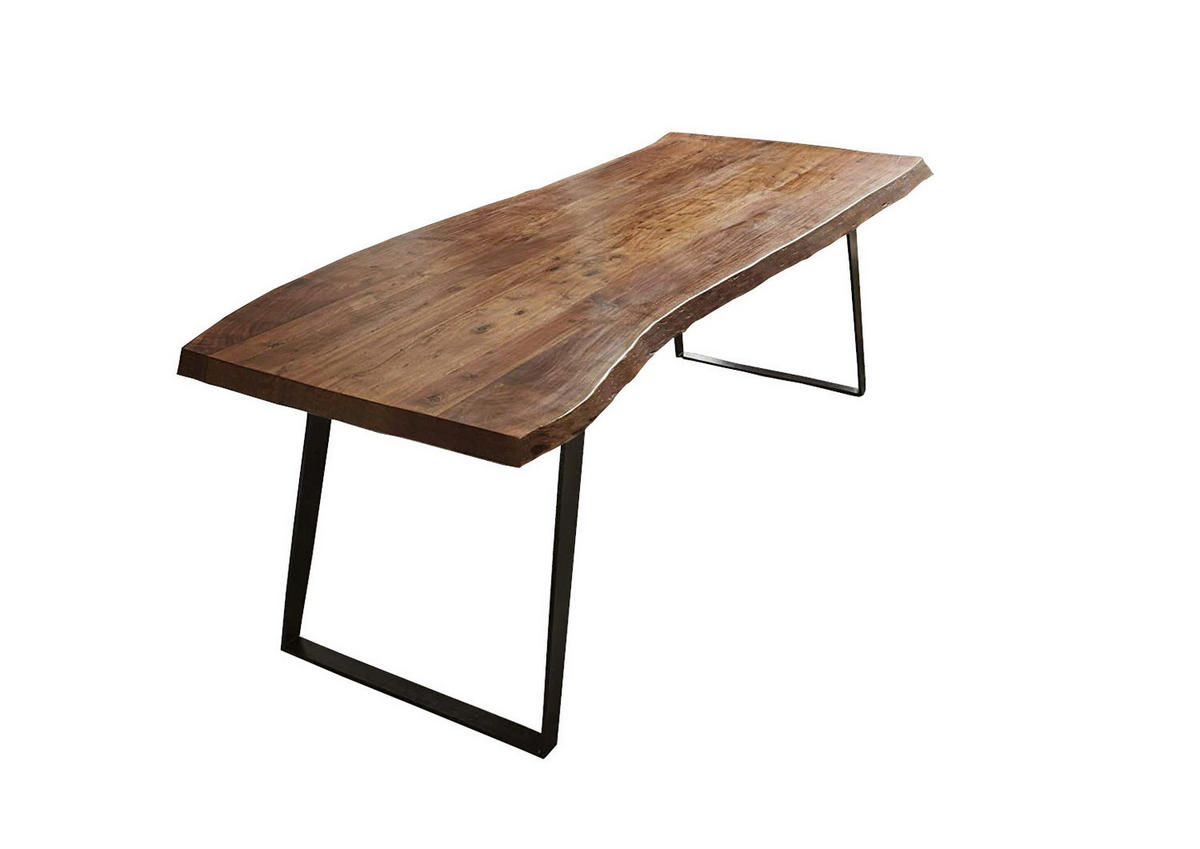 HochwertigesUnikat – Der Esstisch besteht aus massiven und robusten Akazienholz.Aufgrund der einzigartigen Maserung erhalten Sie ein Unikat mit individuellemCharakter. Das schräge U-förmige Gestell sorgt für einen gelungenen Kontrast,welcher dem Massivholztisch einen Hauch von industriellem Lookverleiht.