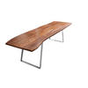 Hochwertiger Esszimmertisch Hobart in der Größe 260x100cm – Akazienholz massiv & nussbaumfarben, echte Baumkante, schräges U-Gestell silberDer trendige Esstisch überzeugt durch eine perfekt gelungene Kombination aus Natürlichkeit und stylischer Moderne. Holen Sie sich dieses Unikat mit individuellem Charakter für Ihr Esszimmer.Natur Pur – Besonderes Highlight des Esszimmertisches sind die Tischkanten, die den natürlichen Formen eines Baumes entsprechen und direkt aus dem Baumstamm geschnitten wurden.