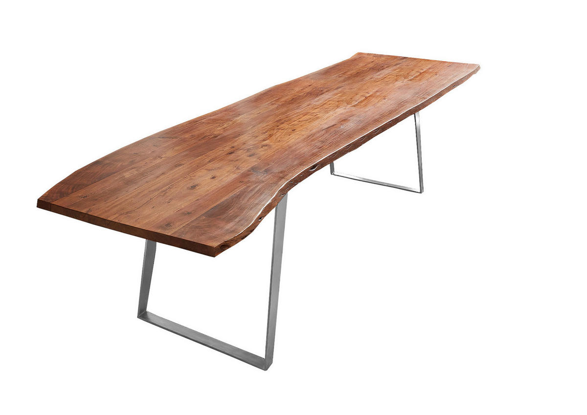 Hochwertiges Unikat – Der Esstisch besteht aus massiven und robusten Akazienholz. Aufgrund der einzigartigen Maserung erhalten Sie ein Unikat mit individuellem Charakter. Das schräge U-Gestell sorgt für einen gelungenen Kontrast, welcher dem Massivholztisch einen Hauch von industriellem Look verleiht.