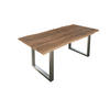 Massiver Esstisch Lauren 220 x 100 cm, massives Akazienholz Natur in nougat, naturbelassene Baumkante, schwarzes U-Gestell