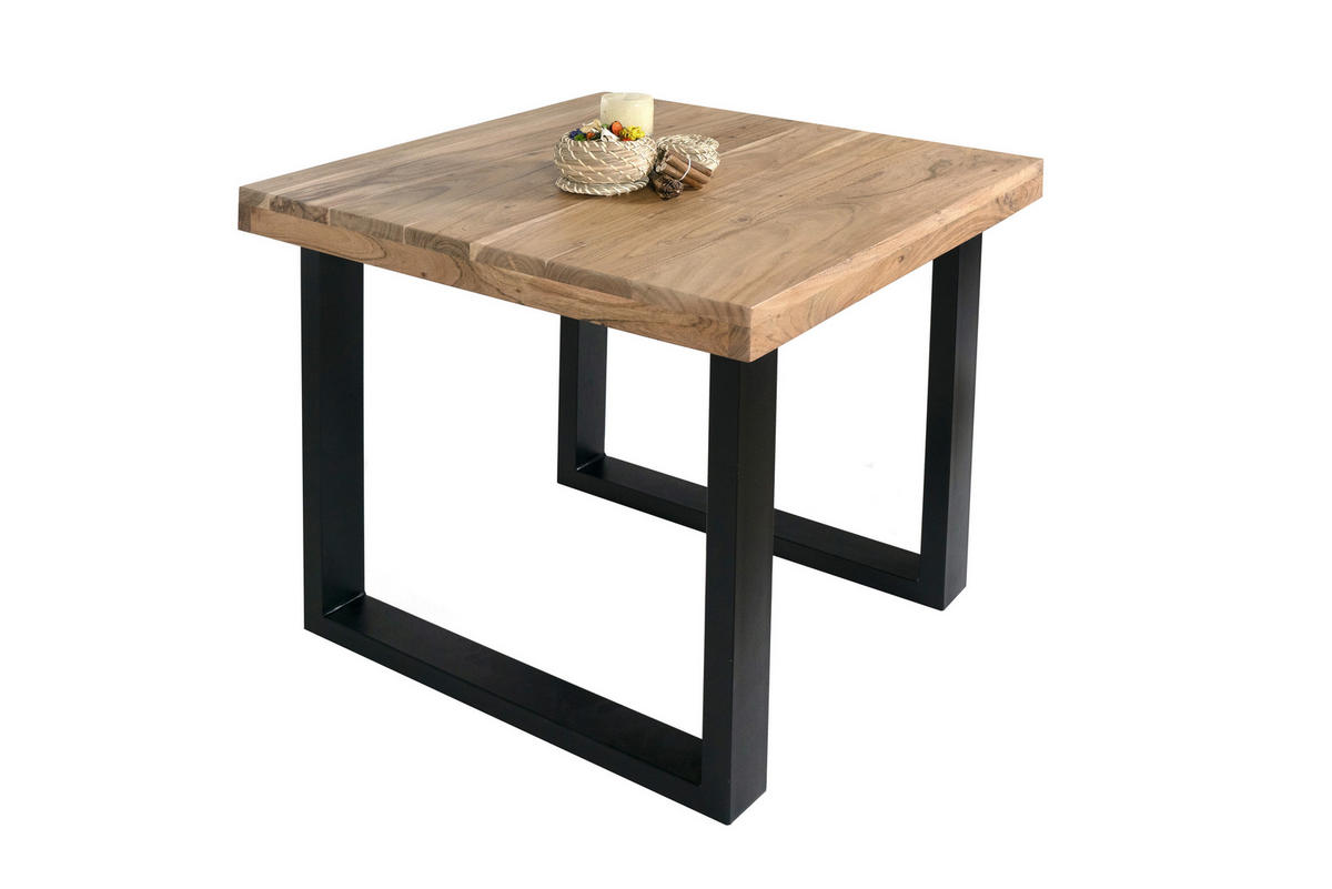 Trendiger Esszimmertisch Rio, 80 x 80 cm, Akazienholz massiv & naturfarben, gerade Tischkante (25 + 45 mm), U-Gestell Schwarz