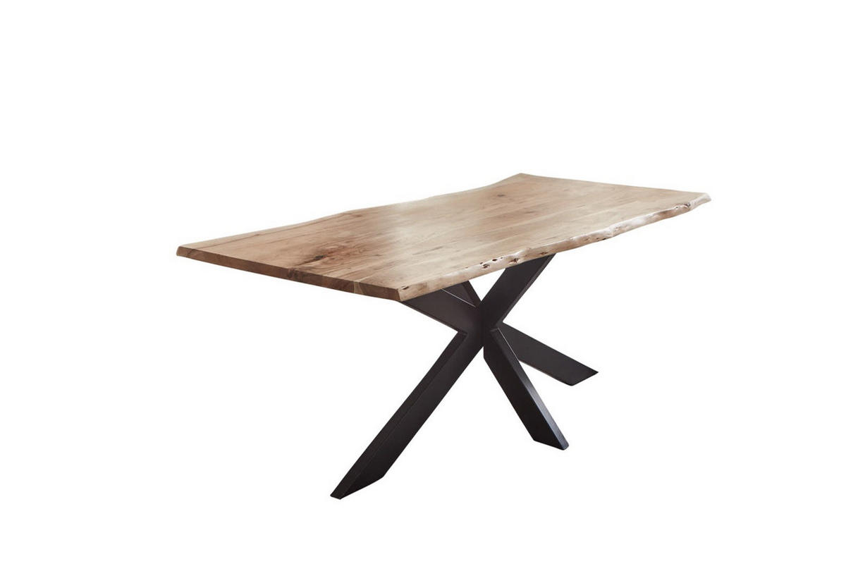 Trendiger Esszimmertisch Tabea mit schwarzem Spider-Gestell aus Metall, 200 x 100 cm, Akazienholz naturfarben, echte Baumkante, Tischplatte 35 mm