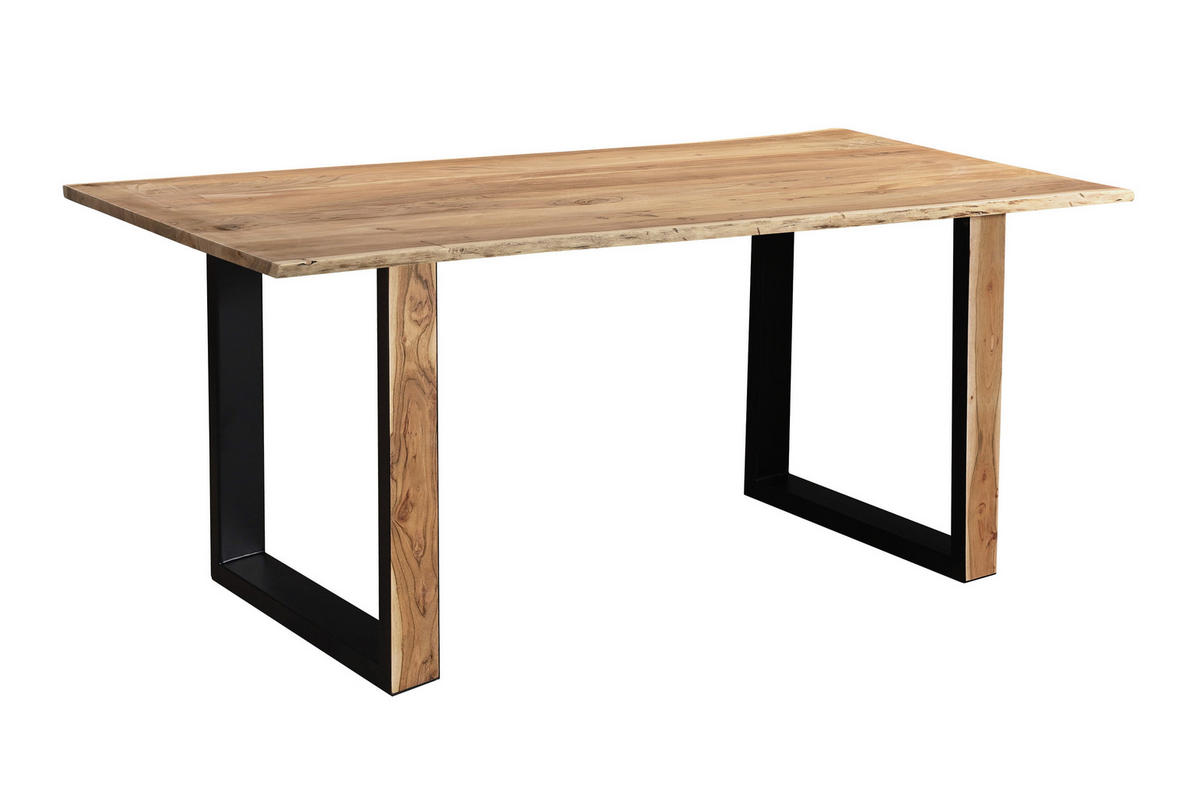 Trendiger Esszimmertisch Melbourne, 180 x 90 cm, schwarzes U-Kufengestell aus Metall und Holz außen, Akazienholz massiv + naturfarben, echte Baumkante