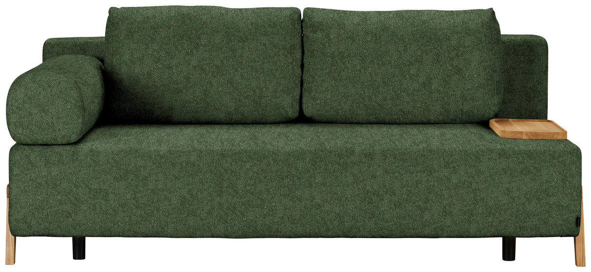 Sehenswerter Hingucker Die charmante Farbgebung in Olivgrün verhilft dem Möbel zu einer ästhetischen Optik. Als stimmiges Finish für das Design fungieren die hohen, eckigen Füße aus Eiche in Naturfarben, welche luftige Bodenfreiheit schaffen.