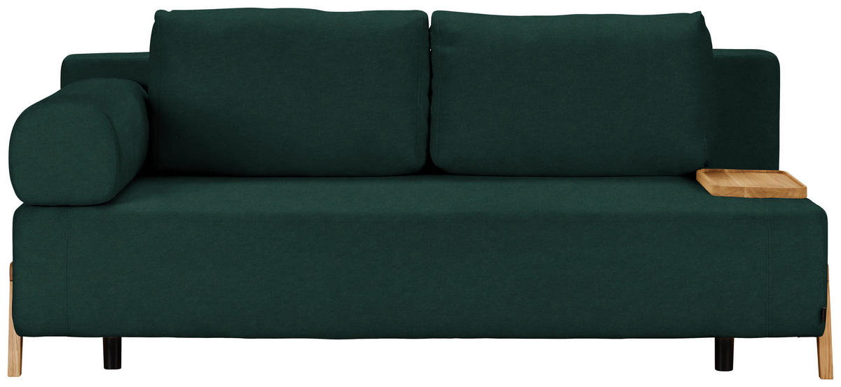 Absolut sehenswert Das Polstermöbel betont mit seiner natürlichen Farbgebung in Waldgrün eine harmonische Atmosphäre. Mit den hohen, eckigen Füßen aus Eiche in Naturfarben ist ein stabiler Stand gegeben und das Design wird adäquat komplettiert.