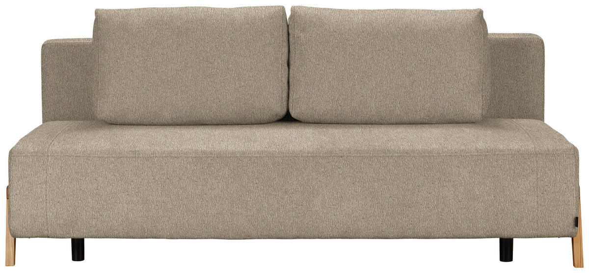 Dieses Design kann sich sehen lassen Das neutrale Kolorit in Greige verleiht dem Möbel eine harmonische Optik und fügt sich schick in verschiedene Einrichtungstrends ein. Für das stilgerechte Finish setzen hohe, eckige Füße aus Eiche in Naturfarben stimmige Akzente und schaffen luftige Bodenfreiheit.