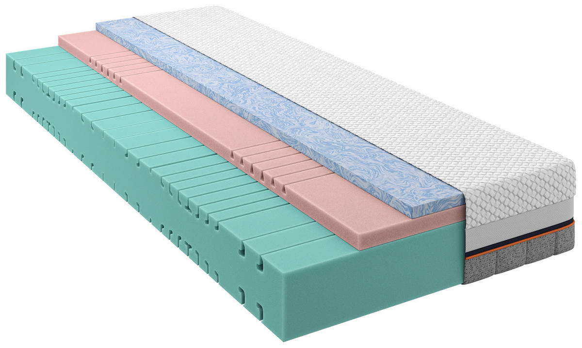 Schaumstoff- sowie Kaltschaumkern für vollendete Schlafharmonie dank softer und formbeständiger Eigenschaften. In einem durchgehenden Bezug befinden sich bei dieser