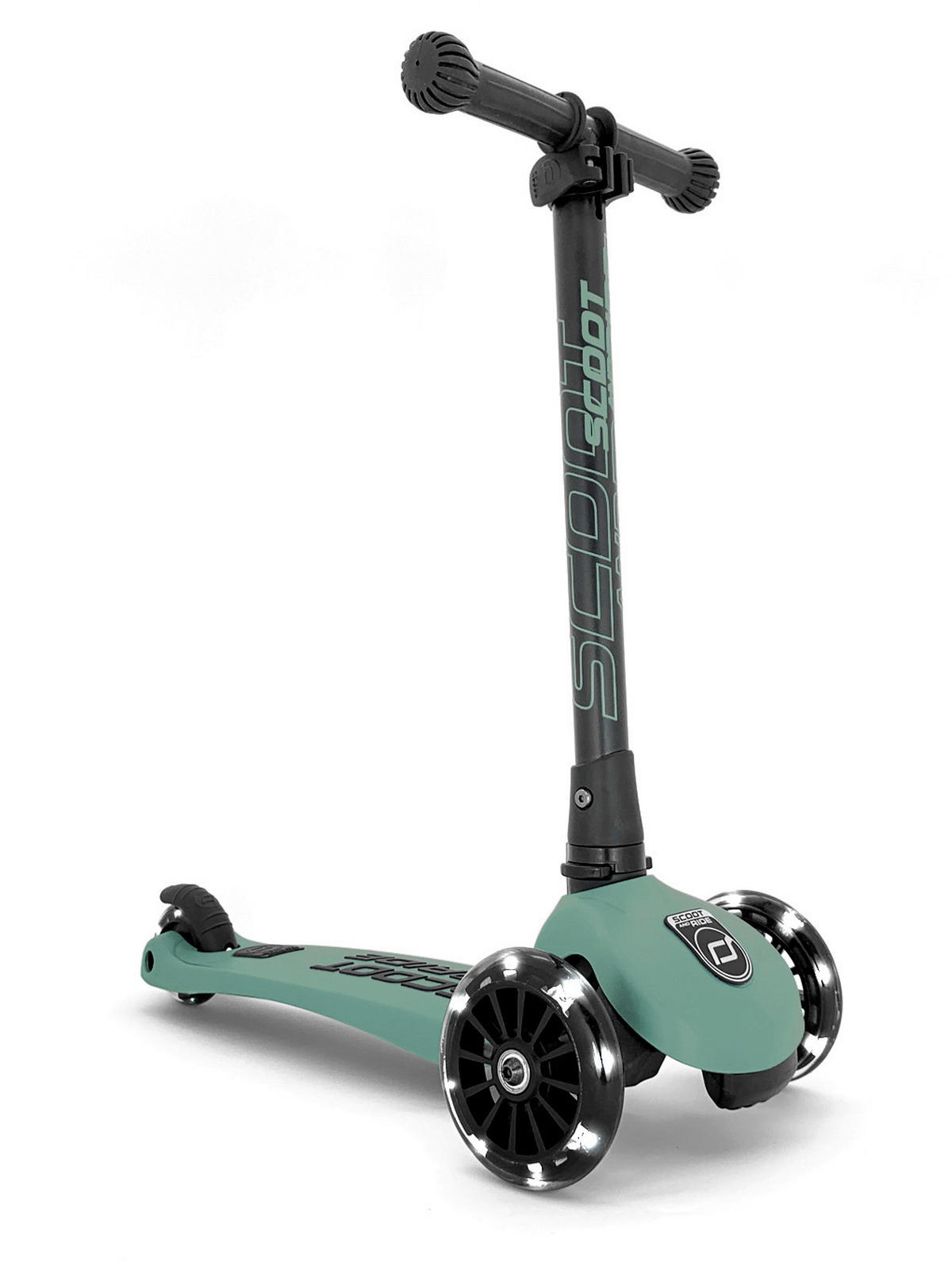 Kinderscooter "Highwaykick 3 LED" in Dunkelgrün - cooler Cruiser für Kids