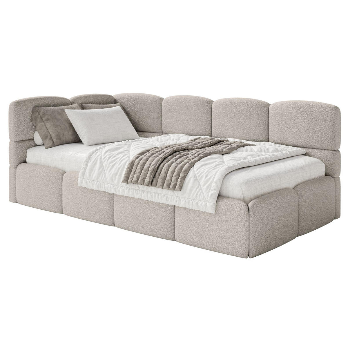 Selsey JUGENDBETT Cloudy links mit Matratze Bouclé Greige