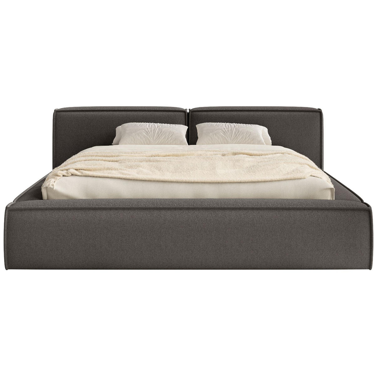 Das niedrige, glatte Kopfteil sorgt für ein offenes Raumgefühl und verleiht dem Design eine elegante Balance. Es ist weich gepolstert und bietet angenehmen Komfort, ohne den Raum optisch zu dominieren.