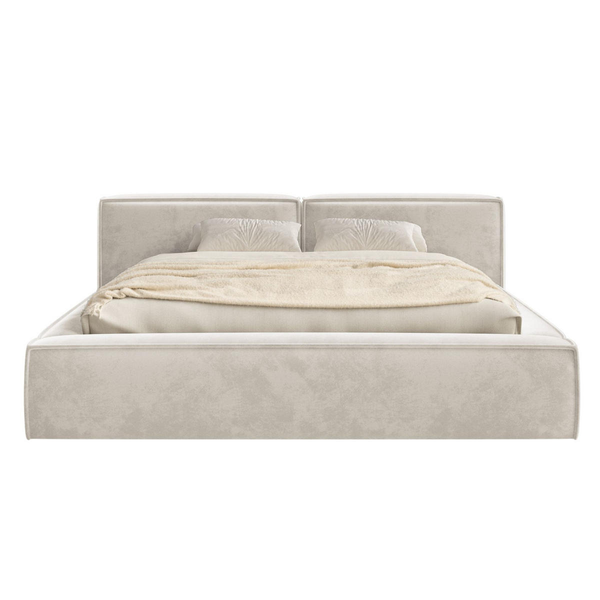 Das glatte, gepolsterte Kopfteil unterstreicht den modernen Charakter des Designs und sorgt zugleich für Komfort beim Sitzen oder Anlehnen. Es fügt sich dezent in den Raum ein und lässt ihn großzügig wirken.