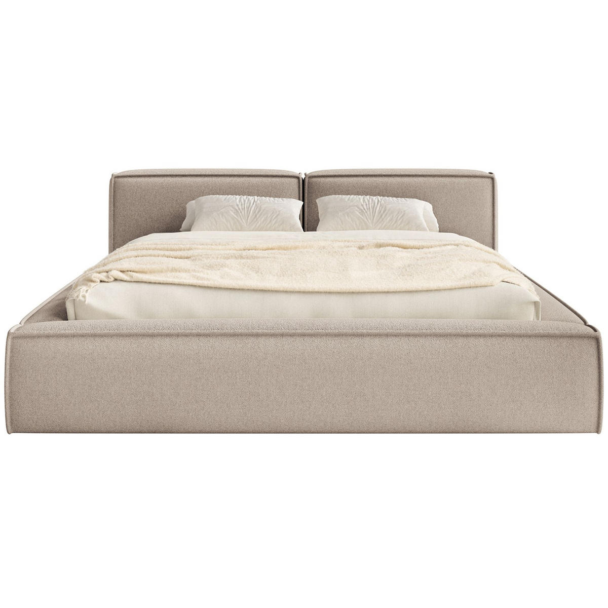 Das niedrige, glatte Kopfteil sorgt für ein offenes Raumgefühl und verleiht dem Design eine elegante Balance. Es ist weich gepolstert und bietet angenehmen Komfort, ohne den Raum optisch zu dominieren.