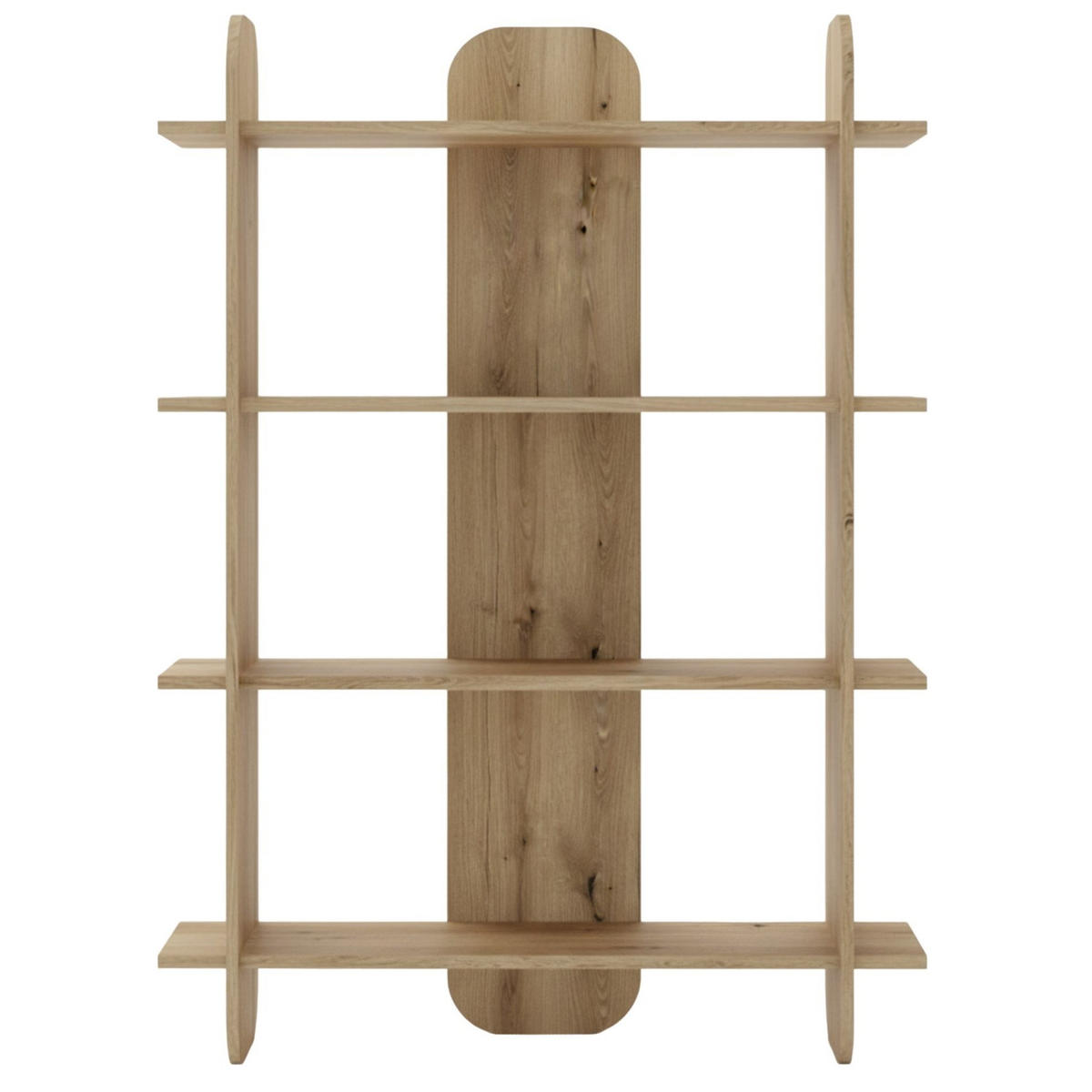 Sein minimalistisches Design fügt sich nahtlos in jeden Raum ein und verleiht Ihrem Zuhause Eleganz und Leichtigkeit. Dank der offenen Bauweise haben Sie jederzeit einfachen Zugriff auf Ihre Lieblingsbücher, Dekorationen oder Pflanzen. Vier großzügige Regalböden bieten Ihnen viel Platz für kreative Gestaltungsmöglichkeiten – die seitlichen Böden eignen sich perfekt für kleinere Akzente. Abgerundete Elemente an den Seiten sorgen für eine harmonische und leichte Optik.