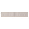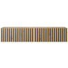 gefräste Frontpartie, die durch kontrastierende dunkle Streifen eine besondere Rhythmik erhält. Diese plastische Oberflächenstruktur verleiht dem ansonsten schlichten Korpus eine anspruchsvolle Tiefe und Eleganz. In Kombination mit natürlichen Materialien, organischen Farbtönen oder Zimmerpflanzen unterstützt das Lowboard ein harmonisches und einladendes Raumklima.