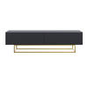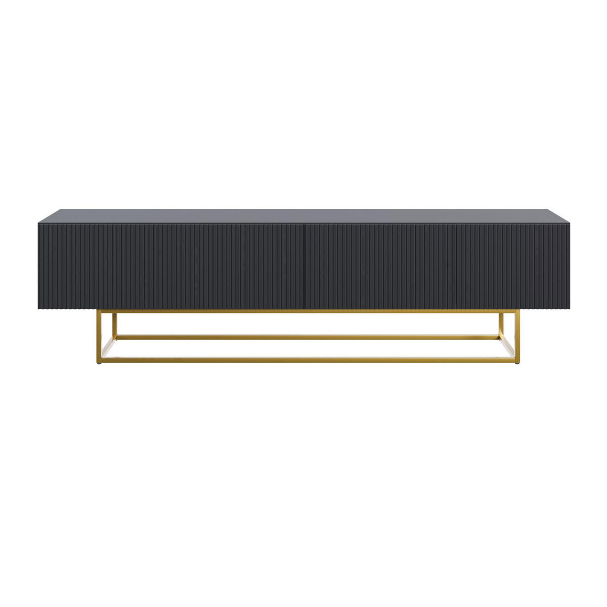 Der TV-Schrank Veldio ist ein echter Blickfang in jedem Wohnzimmer. Die geriffelten Fronten verleihen dem Schrank einen modernen und stilvollen Look und können dazu beitragen, einen Raum größer wirken zu lassen. Geriffelte Fronten können auch einen praktischen Vorteil bieten: auf ihrer Oberfläche sind die lästigen Fingerabdrücke kaum sichtbar. Das goldene Metallgestell sorgt für einen eleganten Kontrast. Es ist außerdem sehr stabil, langlebig und pflegeleicht, was das Lowboard zu einer guten Investition macht , die viele Jahre hält. Veldio verfügt über zwei geschlossene Fächer, die ideal für die Aufbewahrung von wichtigen Unterlagen, DVDs, Blu-rays oder anderen Medien sind. Die Türen lassen sich spielend leicht mit dem praktischen Push-to-Open System öffnen, so stören keine Türgriffe den minimalistischen, cleanen Look der Fronten.