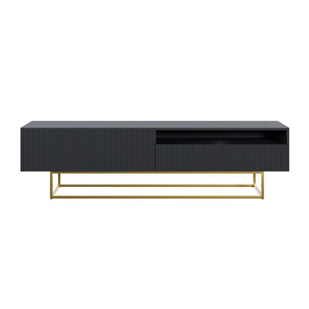 TV-SCHRANK Veldio Schwarz mit offenem Fach und goldenen Metallbeinen 175 cm - Goldfarben/Schwarz, Holzwerkstoff/Metall (175/46.5/31.6cm) - SelseySelsey