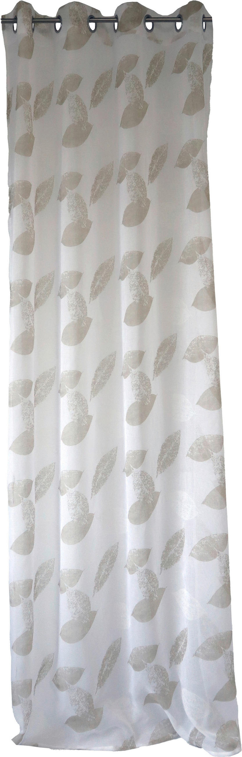 Weiß und Beige (halbtransparent) verleihen Sie Ihrer Fensterfront den schmuckvollen Feinschliff. Das angenehme Kolorit unterstreicht in Kombination mit dem Blätter-Dekor ein aktuelles Ambiente. Unter Zuhilfenahme der