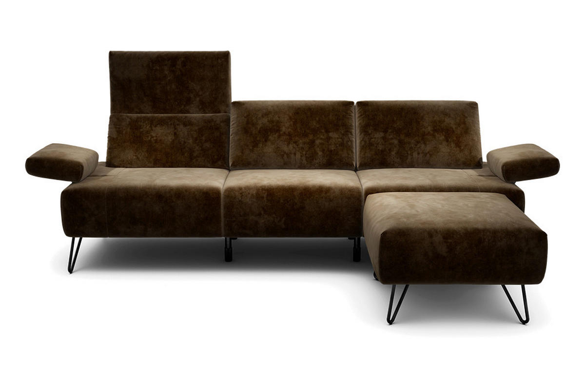 SENSOO 3-Sitzer-Sofa mit Samt-Bezug in Braun mit Hocker