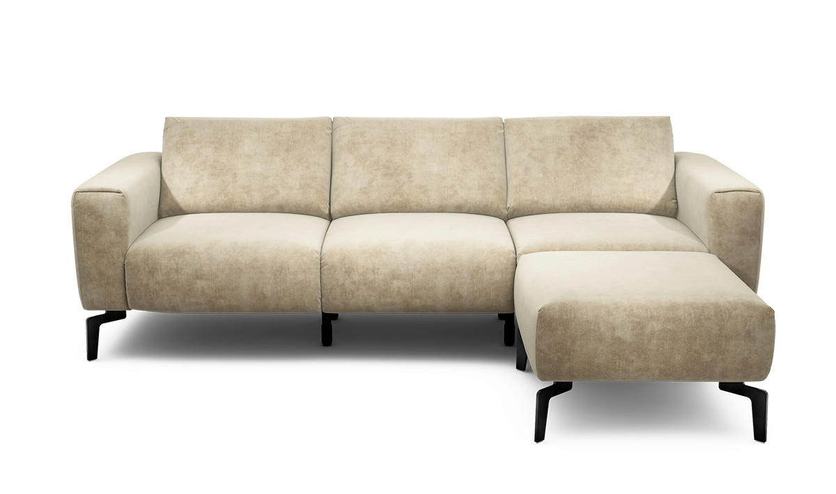 SENSOO 3-Sitzer-Sofa mit Samt-Bezug in Sandfarben mit Hocker