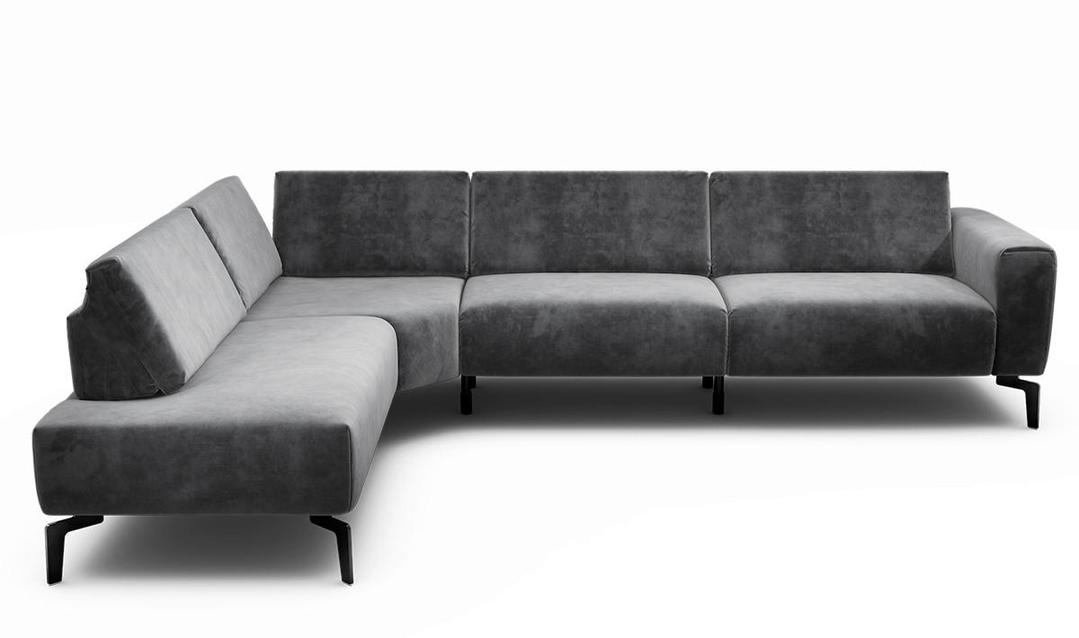 Großes SENSOO Ecksofa mit Samt-Bezug in Anthrazit: individuell entspannen